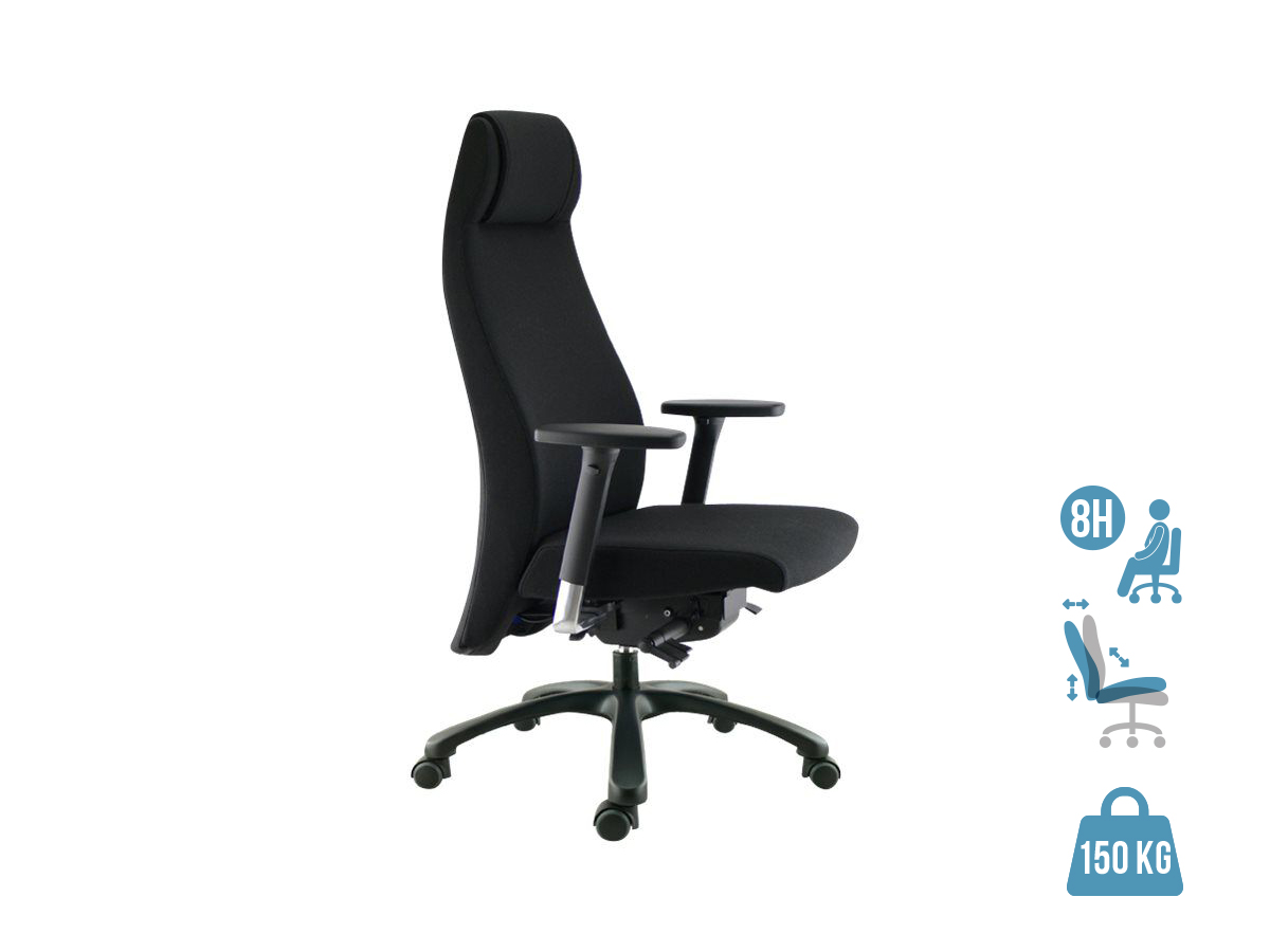 Description Le fauteuil de bureau GOXOA convient pour usage intensif et particulièrement aux personnes en surcharges pondérale. Haut dossier avec têtière très large assise avec épais rembourrage en mousse de haute densité et renforts latéraux de maintien. Tous les produits de la marque
