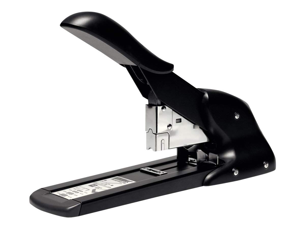 Description Agrafeuse heavy duty robuste, avec chargement frontal, mécanisme à levier pour régler la hauteur d’agrafage. Parfaite pour le service courrier et le bureau. Tous les produits de la marque